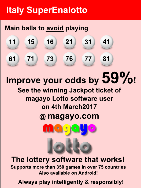 Improve your odds by 59% in winning Italy SuperEnalotto with magayo Lotto software!